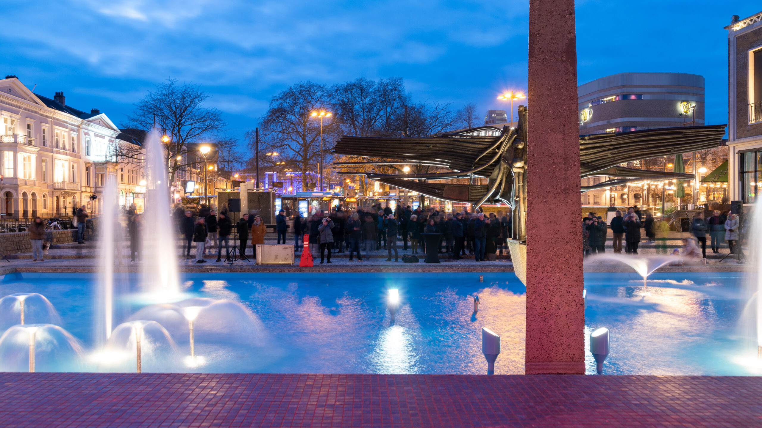 Tip van ons: wil je het monument bekijken? Ga dan in de avond langs! De fontein en de rode paraplu’s zijn prachtig verlicht en zorgen voor een nog mooier aanzicht.